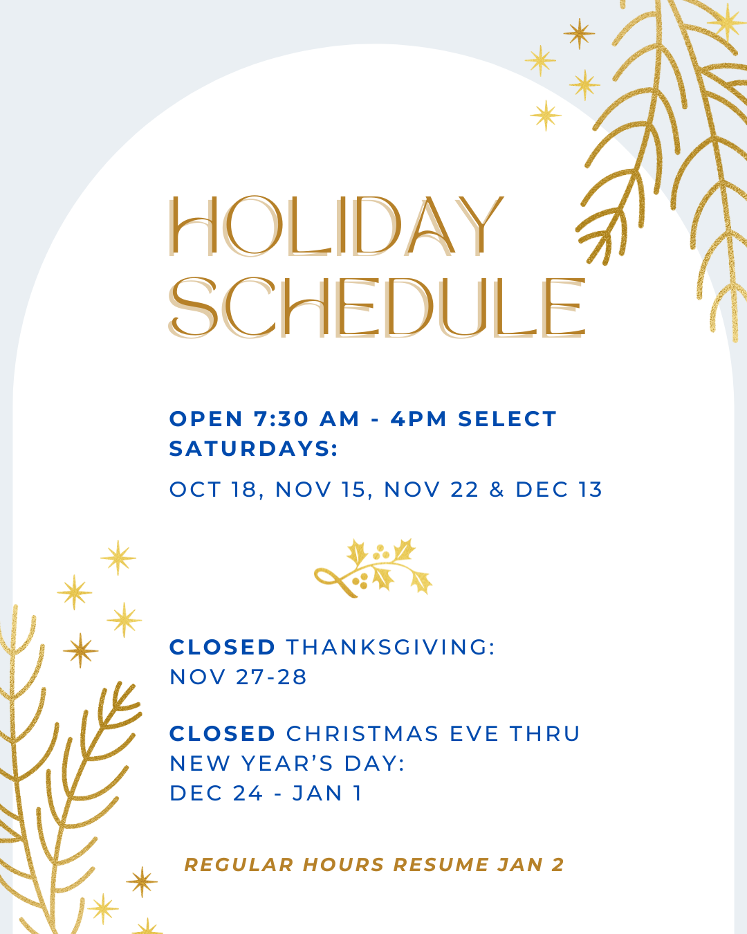 Please arrive 1⁄2 hour before closing to pick up glasses or for glasses adjustments.